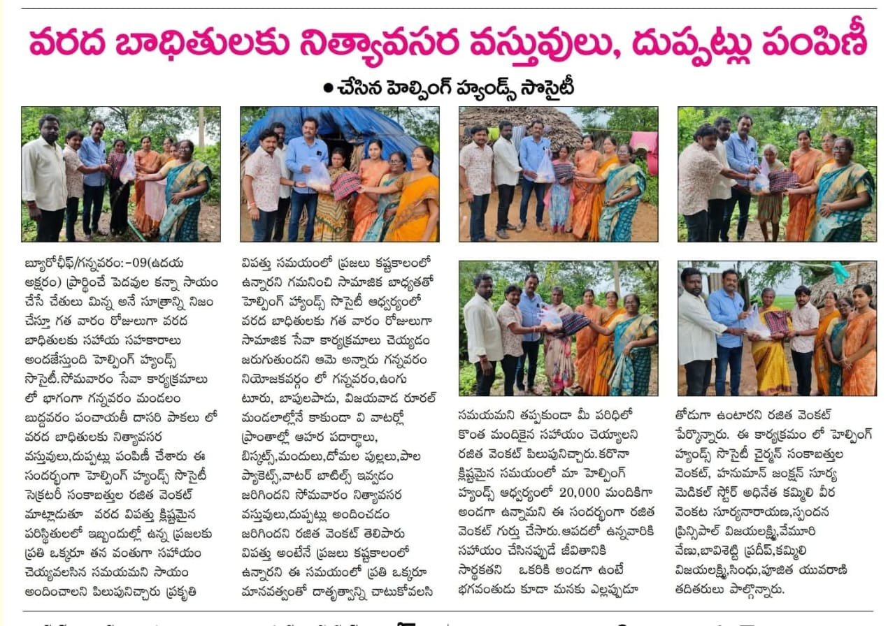 At Helping Hands Spandana, we believe that every small act of kindness brings meaningful change. Through our ongoing initiatives, awareness campaigns, community service activities, and emergency relief efforts, we continue to touch lives and build stronger, more compassionate communities. Stay connected to this page for the latest news, updates, and field stories from our team and volunteers.